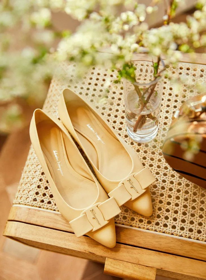 新系列将1979年经典的VARA蝴蝶结重新演绎,尖头+同色金属配件的设计加了点清冷感,放大的蝴蝶结青春气息又很足,休闲或是正式场合都能完美hold住。