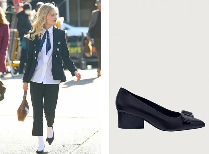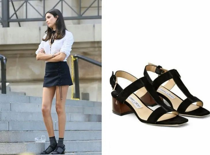 首先吸引COCO目光的是女主角Emily脚上的这双小黑鞋,来自于Ferragamo2020春夏季新推出的VIVA系列。