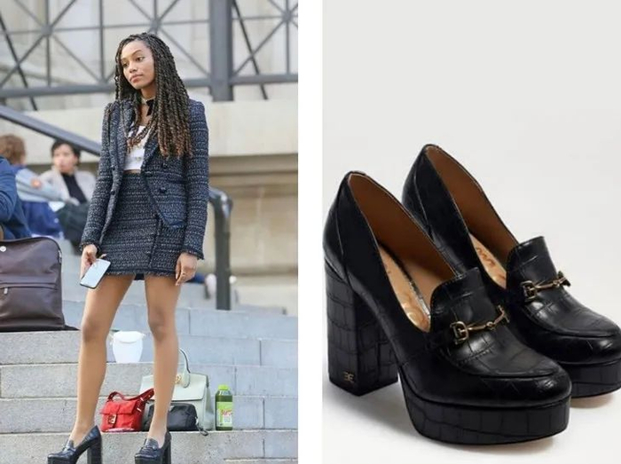 演员Savannah上脚这双浅口高跟鞋是Sam Edelman的Aretha系列,超高防水台的设计中和了高跟在穿着上的疲惫感,增强不少舒适度。