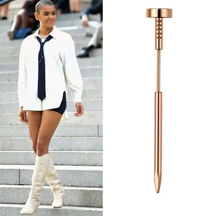 就连Jordan领带上的装饰都很有心机,Cartier Juste Un Clou系列的小钉子别在领带上起到装饰作用,为整体造型增添不少精致度。