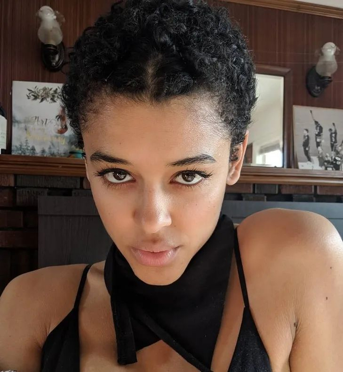 作为非洲和加拿大的混血,Whitney的五官非常有辨识度,眼睛狭长上挑,脸部线条柔和,是非常适合硬照的高级长相。