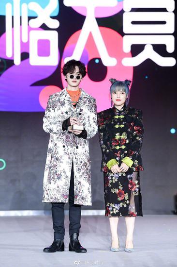 2020风格大赏明星领奖环节朱正廷获得新浪时尚2020风格大赏“年度时尚热点艺人”大奖,密扇品牌创意总监韩雯为其颁奖。