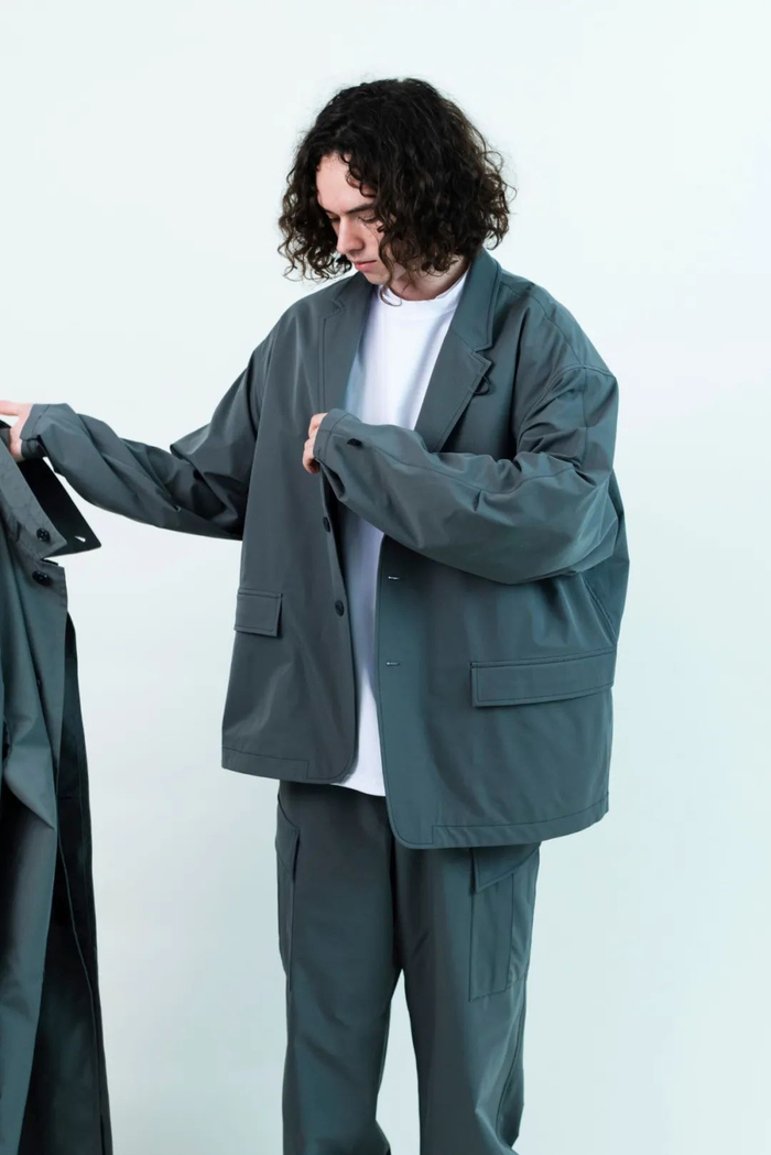 在颜色以及口袋细节上做出了改变,但系列单品总体上保留了 DAIWA PIER 39 2B Jacket 的西装夹克样式,机能面料基本一致。