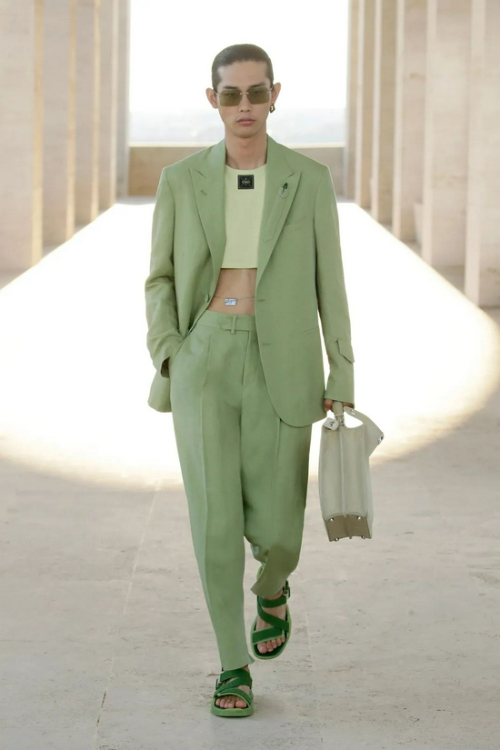 干练的西装加上金属腰链的点缀,让腰部瞬间成为全身的焦点,气质瞬间提升。