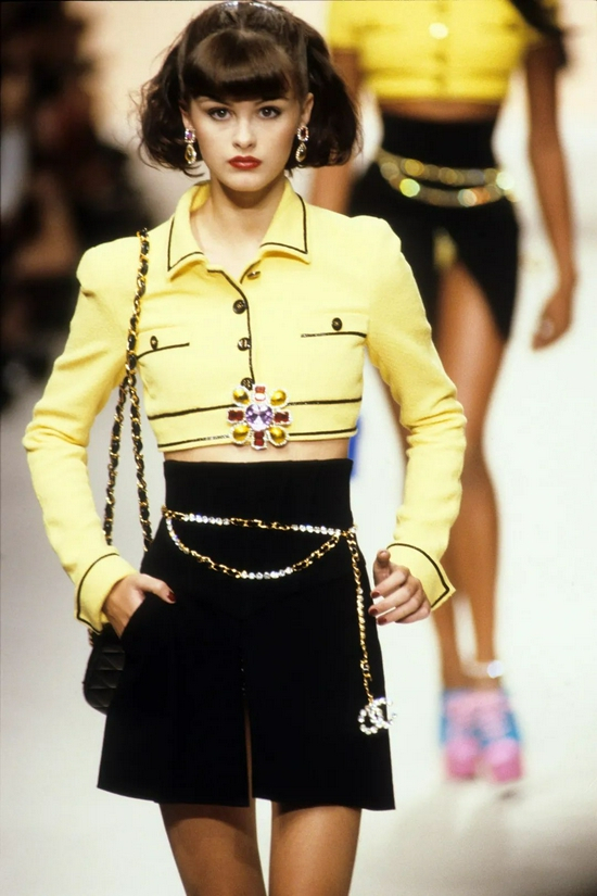 其实早在1964年,Chanel的广告中就出现过腰链元素,当然最经典的要追溯到Chanel 1995年春夏成衣系列,腰链几乎成了每套造型不可或缺的单品。
