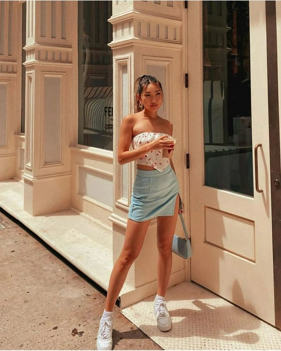 渐变色就是自带层次感,上面搭一件白色吊带背心也会很好看。