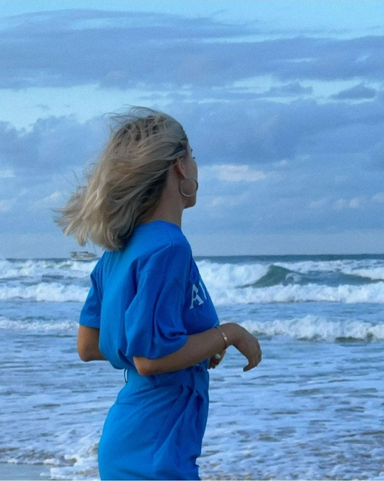 这条裙子的蓝是标准的克莱因蓝了!提亮肤色一点不在话下。面料会形成自然褶皱的肌理,超有质感。