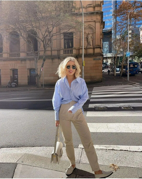 所以这回就找到了博主@laurajadestone~单就肤色来看,典型的黄黑皮,平时分享的look也是比较接近日常通勤的路线。