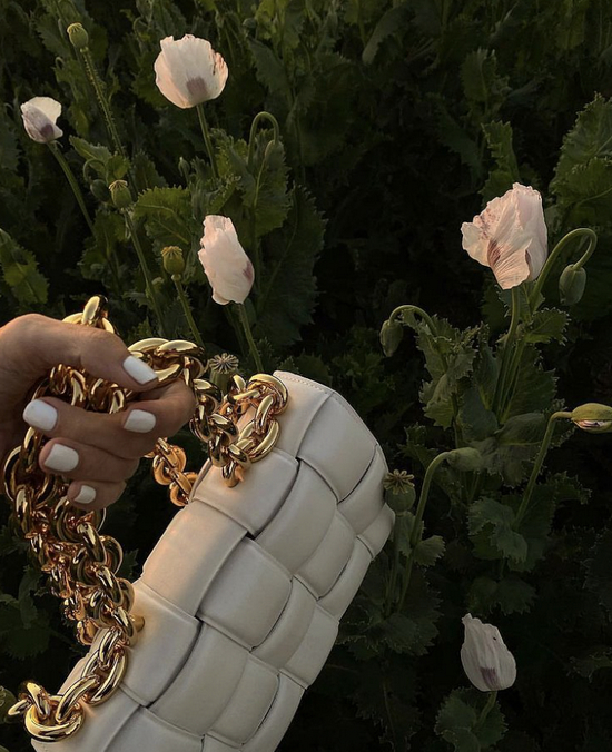 不仅有点家产的东北老哥为了彰显个性爱戴大金链,这个充满力量感的元素现在是被女性时尚趋之若鹜,Bottega Veneta的Mount和Cassette都以此为设计元素,不同的是Mount相对更加优雅,有着方正的包身和风琴褶结构,采用了女孩们最爱的复古翻盖包廓形,翻盖处采用了Bottega现在极具代表性的三角元素,完美中和了力量感链条的粗狂感,又优雅又酷,有种刚柔并济的时髦感,最近又添了托特大包,更适合在职场上上阵杀敌。