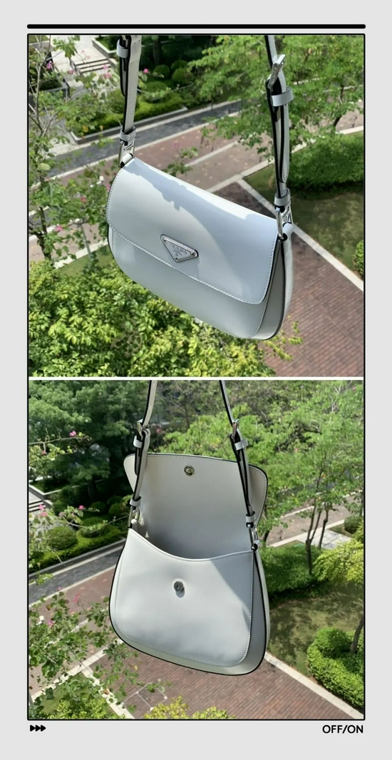 Cleo现在应该是Prada最火的包包,我入手了一只白色款,亮面皮革自带着镜面光泽,简约的设计加上圆润曲线,实在太百搭了。