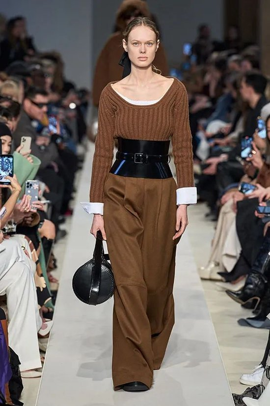而Max Mara Fall 2023秀场更是被大家视为“跟着秀场学美拉德风”的优秀栗子,原因就是这场秀中存在很多将不同深浅的棕色单品搭在一起的造型。