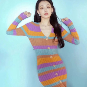 大面积撞色的宽松毛衣开衫就很好看,宽条纹更显随性松弛,长款版型出街十分亮眼。