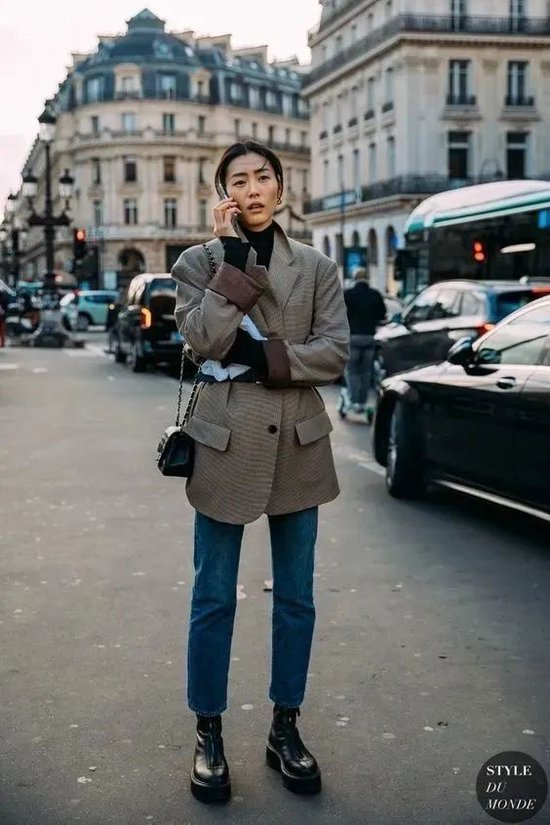 高个子女孩们,中长款or长款你们就随便选吧,搭配阔腿裤或leggings都可以,不想花太多心思又想要酷一点,就挑同色系单品搭配。