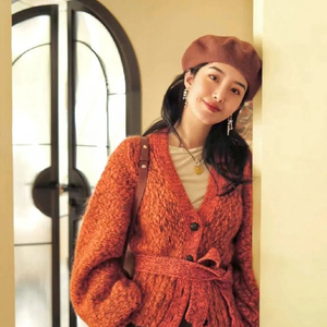 如果怕整身棕咖土橘色系显老,也可以找一个亮色单品当做点缀,略带反差的活泼色彩也很显俏皮。