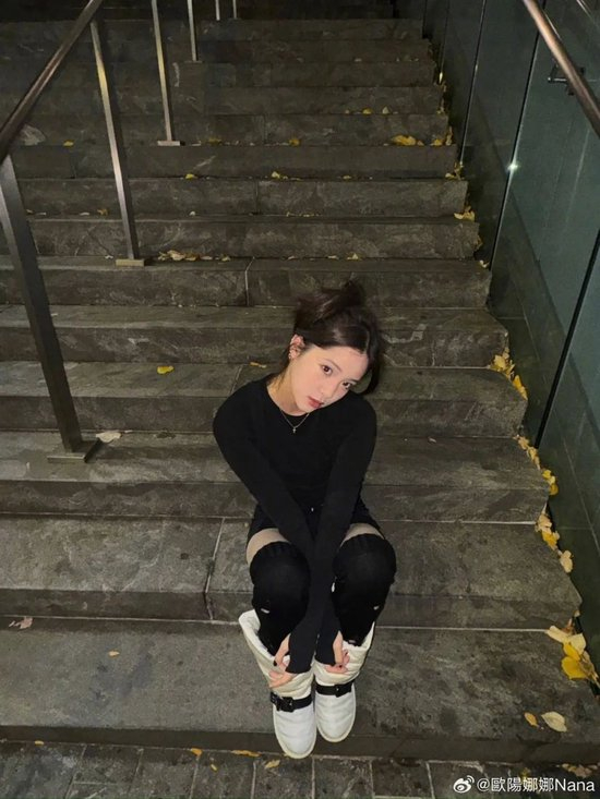 也可以像欧阳娜娜,用一身all black的运动套装搭配黑色机能感户外鞋,轻松诠释利落的酷女孩。