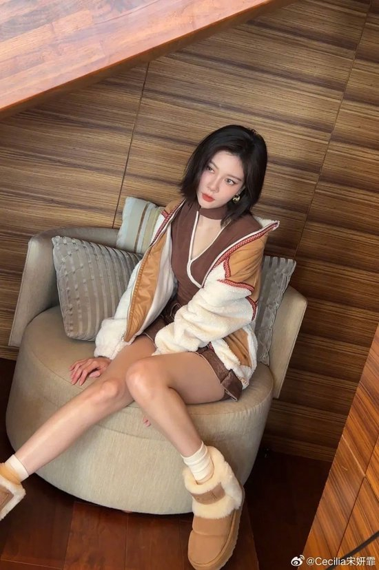 除了雪地靴,羽绒鞋也是不错的保暖选择。周雨彤上脚的这款羽绒靴,靴筒位置替换成了针织面料,一下子就变得轻柔了起来~同时也呼应了服装上的羽绒与针织元素~
