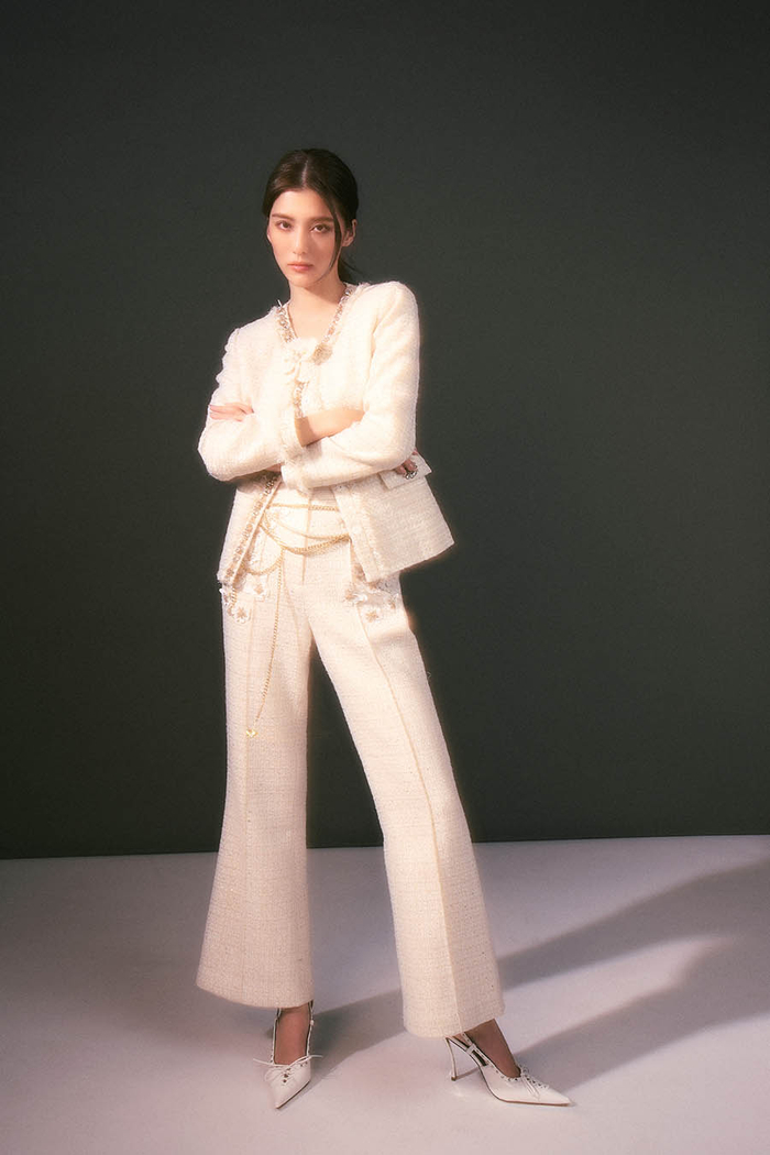 吴千语:我觉得是“温柔而有力”。在遵循一贯的优雅精致的同时,又注入了新鲜感,在利落的设计与剪裁注入了自己的态度,通过衣着的诠释,相信每位女性朋友都能够在MOISELLE慕诗2024春夏系列找到自己的适配,自在,自由,像风一样。