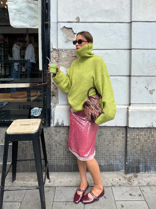 针织开衫、轻薄长袖内搭等过渡性单品都是打造秋日失序感穿搭的基础。兼具实用性与装饰性,可搭配T恤、衬衫甚至连衣裙,选择略显宽松的款式,可以敞开作为层次,甚至随意系在肩头作为装饰。