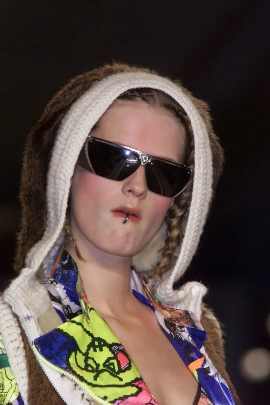 这种“失序美学”,从世纪之交的千禧风格中有迹可循。John Galliano在Dior 2001秋冬系列将低腰裤、丝绸、护目镜、毛线帽混搭得毫无章法,却精准勾勒出一场自由冒险,漆皮或麂皮外套下可以是性感透视内搭,也可以是格纹衬衫,每一种组合都带着自由与不羁。
