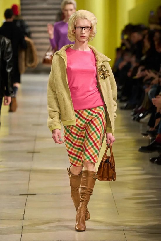 MiuMiu 2025秋冬继续领跑失序感穿搭赛道,用更具巧思的叠穿和非常规组合打破人们的期待,创造出新鲜感。