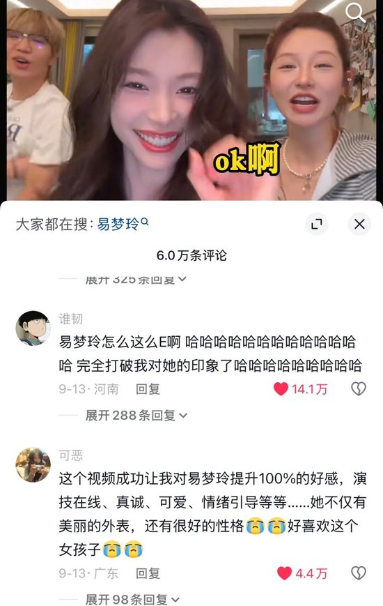 在阿哲的账号,易梦玲生动有趣,放得开,会演戏,激励yyy唱歌的片段温暖了很多人。这次联动打破了很多人对易梦玲的刻板印象,与方圆和阿爆的逻辑如出一辙:美女的“血肉与灵魂”,终于被更多人看见。