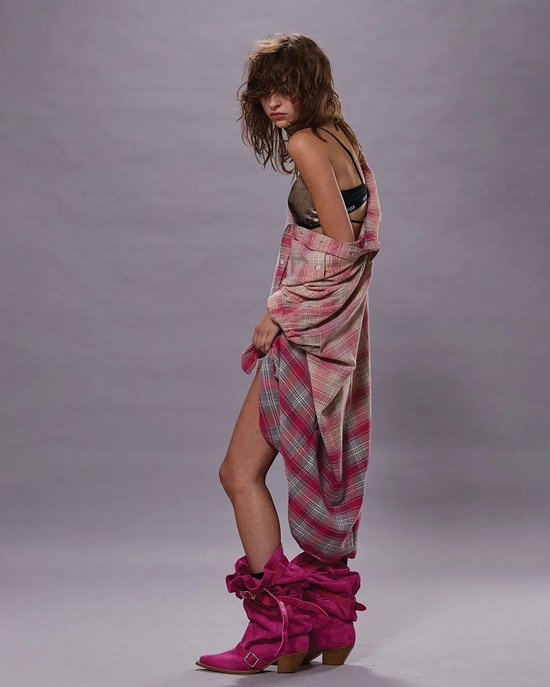 钟楚曦穿的两双同款不同色的堆堆西部靴来自Berad Tree,约1600元。