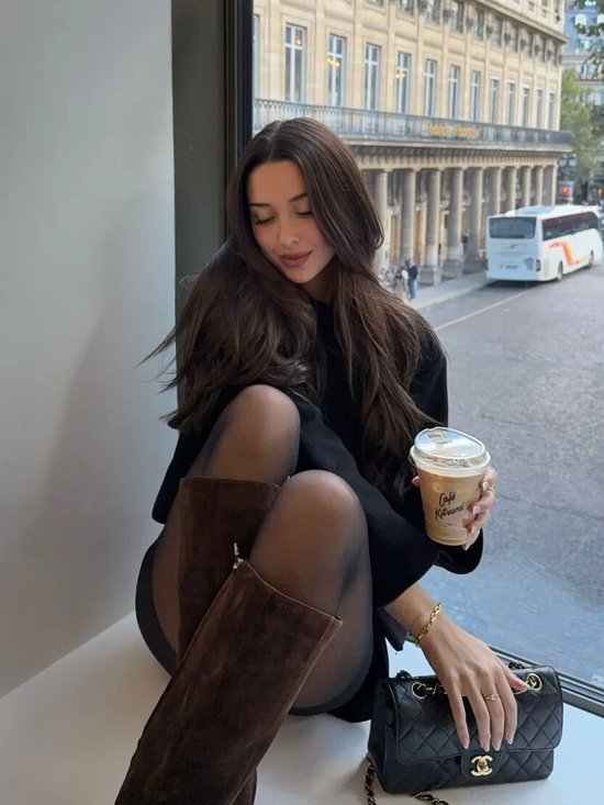 像加拿大博主Zarayna Ferguson,这个月已经搭了无数次的长靴来自纽约品牌Dolce Vita,和下半身失踪穿搭简直绝配,约2000元。