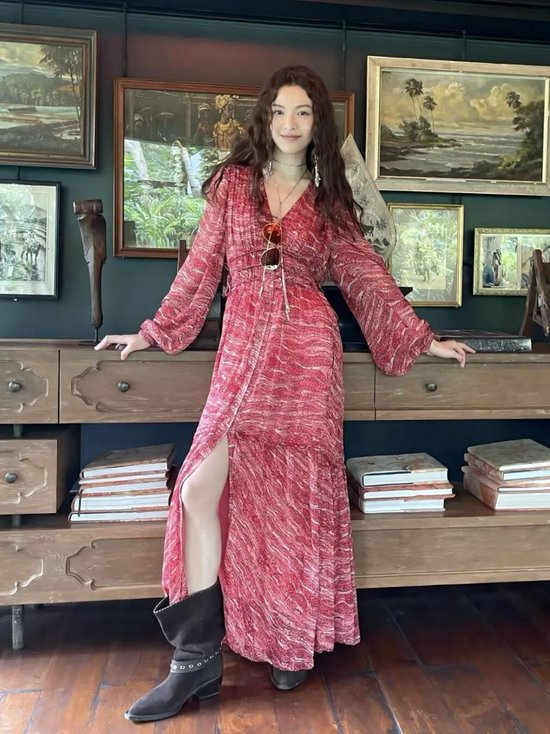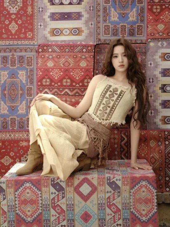 张婧仪今年的生日大片,穿的就来自Isabel Marant,流苏一加,波西米亚风扑面而来。