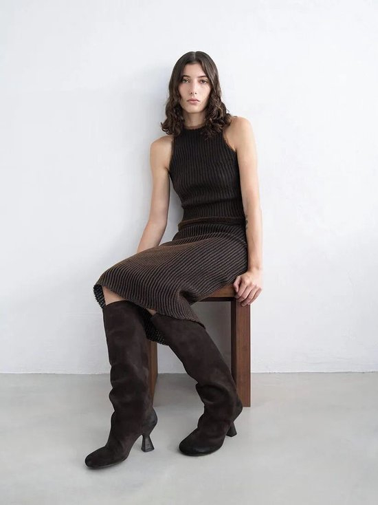 不过胜在品牌设计考虑周全,靴筒足够长,靴口有暗扣调节松紧,可以自由伸缩搭配,玩法多多,售价5200元。