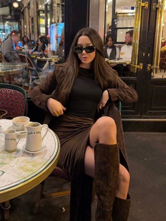 瑞士博主Fredrica Eriksson这双NELLY,约700元,属于是“假两件”裤筒靴的分支,正如其名,像在腿上套了个裤管。