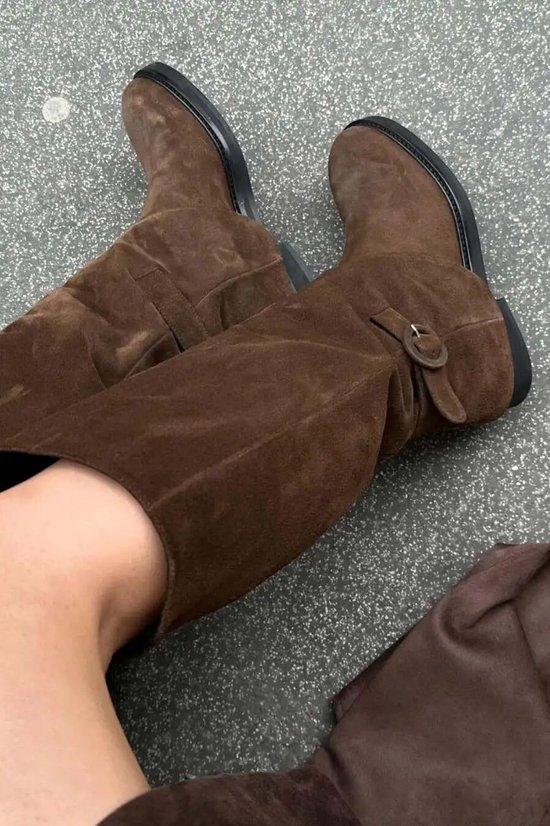 这样皱皱巴巴、松松垮垮型的长靴,全都往脚踝上堆,一股“躺平”的松弛感。