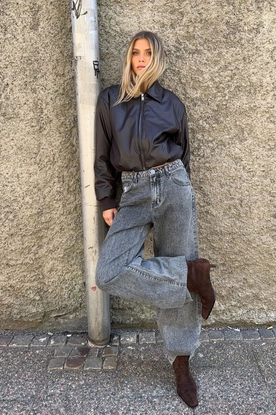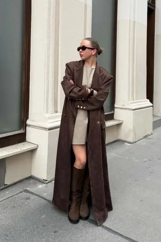 不一定非得把紧身款裤子塞进去,平时搭配宽松一些的直筒牛仔裤、西裤都不违和,大衣一穿,走路带风。