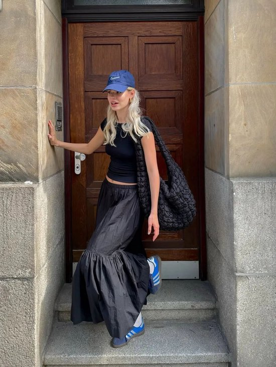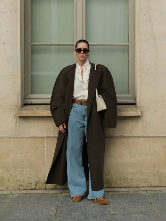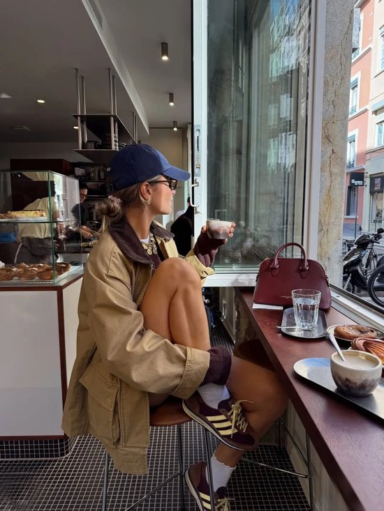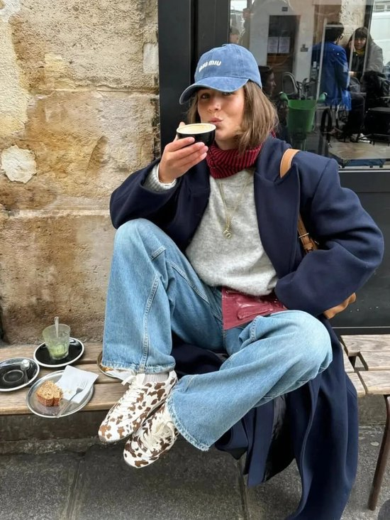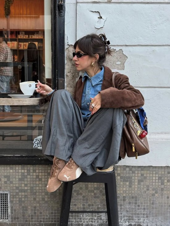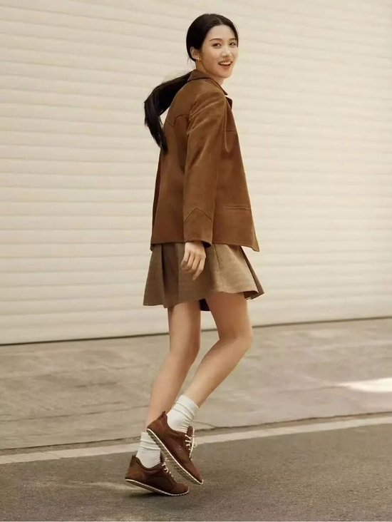 复古球鞋搭配阔腿裤或长裙,内搭Oversized衬衫,外套则是一件长款风衣或西服,既保持专业度又不失时尚感。建议选择焦糖色或黑白配色,更显高级。