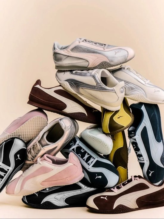 PUMA Bella V2系列以不对称流动型鞋面与标志性Formstrip跑道标识为特色,升级的Ortholite鞋垫带来云朵般的舒适体验,银光黑、银光白等四种配色轻松驾驭各种风格。