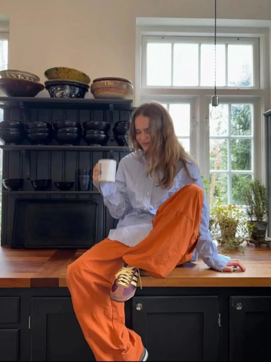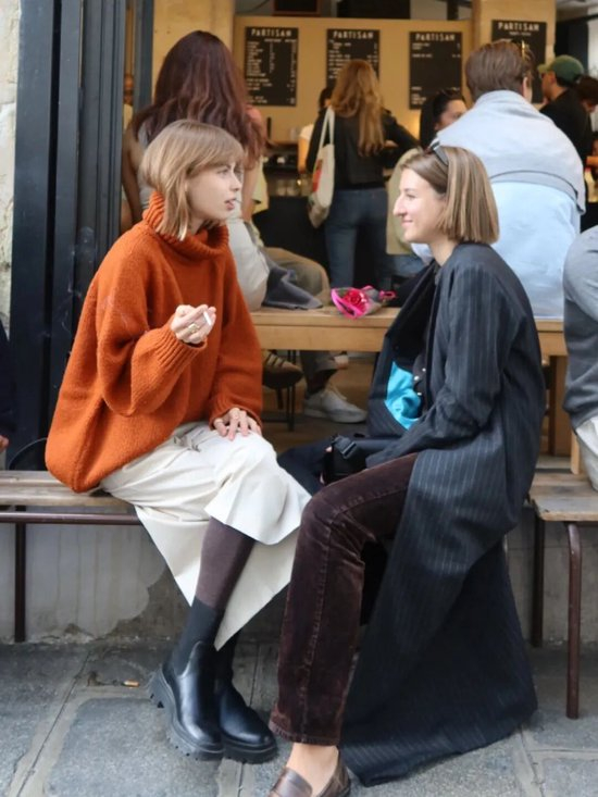 穿搭上,南瓜色最大的优势在于“可深可浅”。浅南瓜色更贴近米色与奶油色的区间,适合通勤与日常;而深南瓜色接近焦糖与铁锈红,气场强烈,非常适合大面积运用。若嫌大面积的南瓜色过于张扬,也可以通过配饰——一只南瓜色手袋、一双短靴或是一条丝巾——来点亮整体造型。