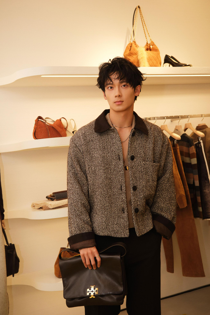 演员吴汉坤身着TORY BURCH 2025秋冬系列斜纹工装夹克、CHARLIE全新包袋亮相活动现场;