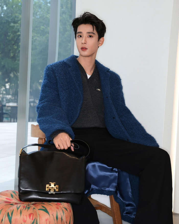 演员吴宇恒身着TORY BURCH 2025秋冬系列廓形羊毛大衣、羊毛V领毛衣、CHARLIE全新包袋亮相活动现场;