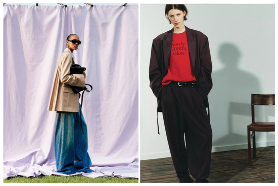 宽松设计的西装外套通过加宽肩部剪裁,可以提升上半身的体量感,使身形更显挺拔,板型的支撑让造型既不过分夸张,又足够表达力量,随性之中维持一份大气与潇洒。