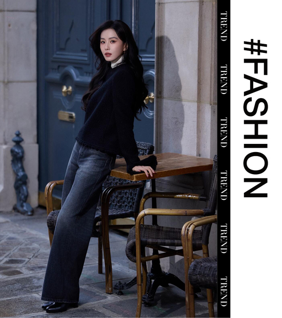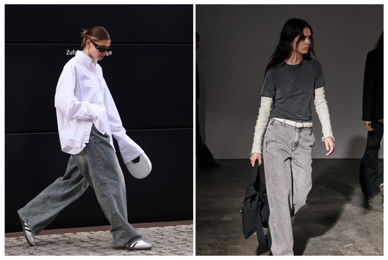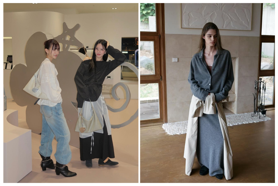 灰色水洗牛仔材质兼具牛仔的休闲感与灰色的冷静气质,百搭且不张扬。在层次搭配时,可选择内外长度不一的单品组合,通过色彩明暗与面料差异拉出视觉节奏,轻松营造静酷轻风格。