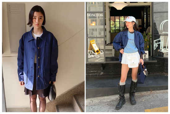 法式工装夹克的静谧蓝调和宽松剪裁,将野性与闲适完美融合。面料耐磨舒适,即便搭配优雅半裙也不违和,整体营造出一种不疾不徐的松弛姿态,自在且惬意。