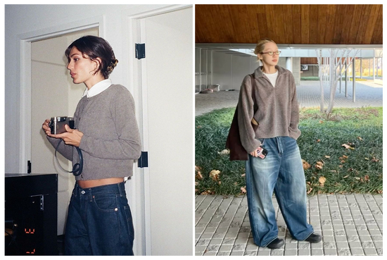 Polo领针织开衫细腻的质感与中性淡彩营造出静谧氛围。内搭简约T恤或衬衫,下身配一条宽松牛仔裤,无须过多装饰,种低调而舒适的搭配,轻松穿出温柔又知性的气质。