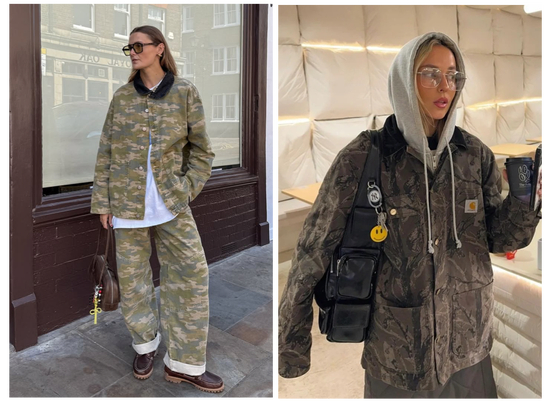 迷彩工装外套可以突出中性帅气的风格,内搭工字背心或修身T恤,甚至可以尝试全身迷彩套装,搭配复古皮鞋或者球鞋,营造不羁的雅痞气息。