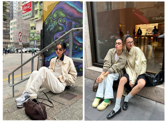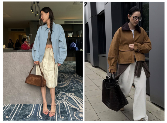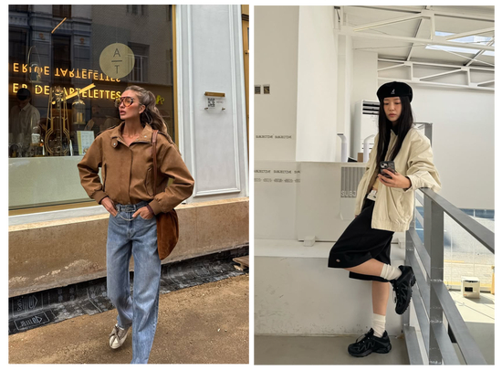 米色工装外套自带温和质感,尤其适合打造自然舒适的日常风格。搭配黑色牛仔或深棕鞋包,突出肌理层次的同时,也避免显得老气。整体低饱和色调干净柔和,仿佛自带一层柔光滤镜,低调却很有品味。