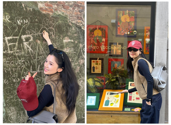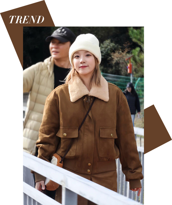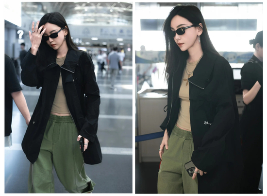 张婧仪这身工装夹克则是细节满满,毛绒绒的工装夹克凸显可爱气质,内搭的上衣与裤装简单素雅,这些细腻的材质削弱了工装的厚重感,增添许多别致的秋冬休闲感。