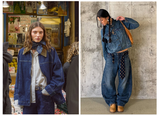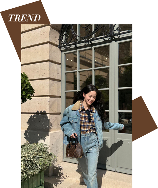 牛仔工装外套凭借硬朗面料显得立体有型,跳脱出传统牛仔颜色的选择,尝试一些有特点的颜色,比如灰色牛仔面料可以突出做旧复古味,深蓝色则更适合搭配白色内搭,强调干练清爽的气质,无须复杂设计,也很百搭时髦。