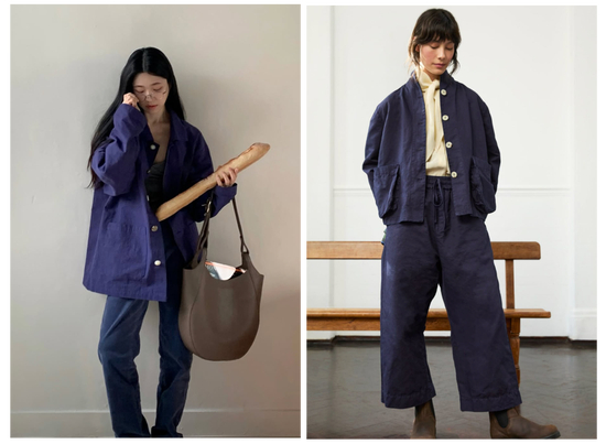 工装外套亦是塑造知识分子风格的关键单品,搭配蓝色衬衫与宽松长裤,整体廓形松弛有型,帅气中藏着一丝乖巧,依靠单品的板型和配色,就已足够传递一种睿智的时尚态度。
