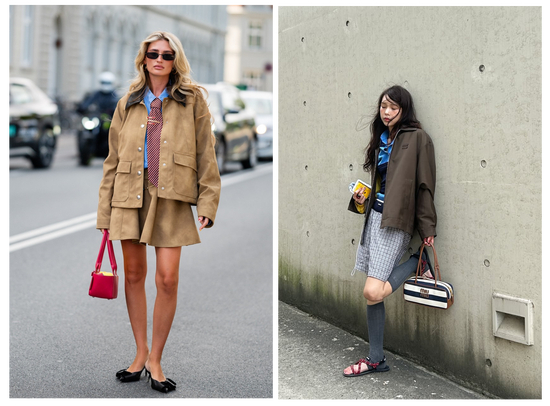 带有运动设计感的工装外套,融入复古运动元素,瞬间唤起体育课的青春氛围。选择经典的米色系,与肤色相近的色调能让造型看起来更加舒适和谐,这种外套不仅能塑造出活力四射的运动感,当下身搭配百褶裙时,又能碰撞出意想不到的少女感。