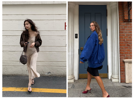 谁说工装外套只能粗犷?用它搭配紧身长裙与细高跟鞋,特别能碰撞出惊艳的效果。外套的建筑感轮廓以近乎“狂野”的方式包裹身体,形成反差魅力,既舒适自在,又透露出不经意的慵懒与性感。