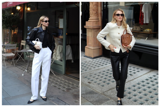 在纷繁的色彩世界中,黑与白的简单搭配始终是塑造高级感的捷径。上身黑色与下身白色的组合,格外轻松惬意,反之,上身白色搭配下身黑色,则更显明快利落。