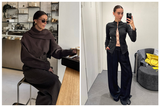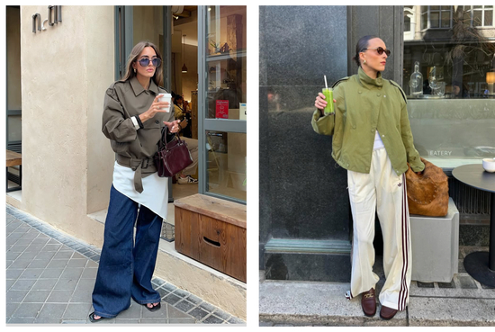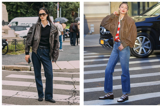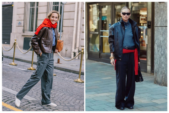 西装裤自带干练的飒气,但想摆脱刻板老气,可以尝试搭配复古乐福鞋或运动鞋,上身搭配一件轮廓硬挺的厚皮夹克,软硬兼施,既保留了西装裤的利落,又融入了冬日的实穿性。
